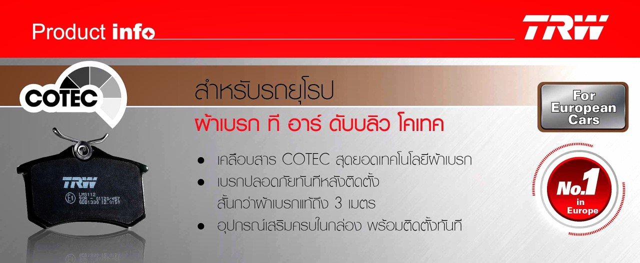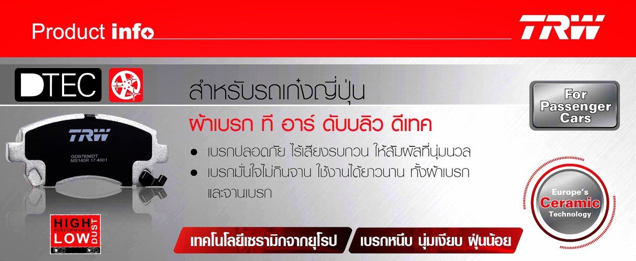 ผ้าเบรครถยนต์ TRW เบรคปลอดภัย เบรคมั่นใจ ไร้ฝุ่นดำ ไร้เสียงรบกวน ใช้ได้ยาวนาน สุดยอดผ้าเบรค แห่งยุดที่คุณต้องเลือกใช้ ผ้าเบรคดีๆราคาเบาๆ