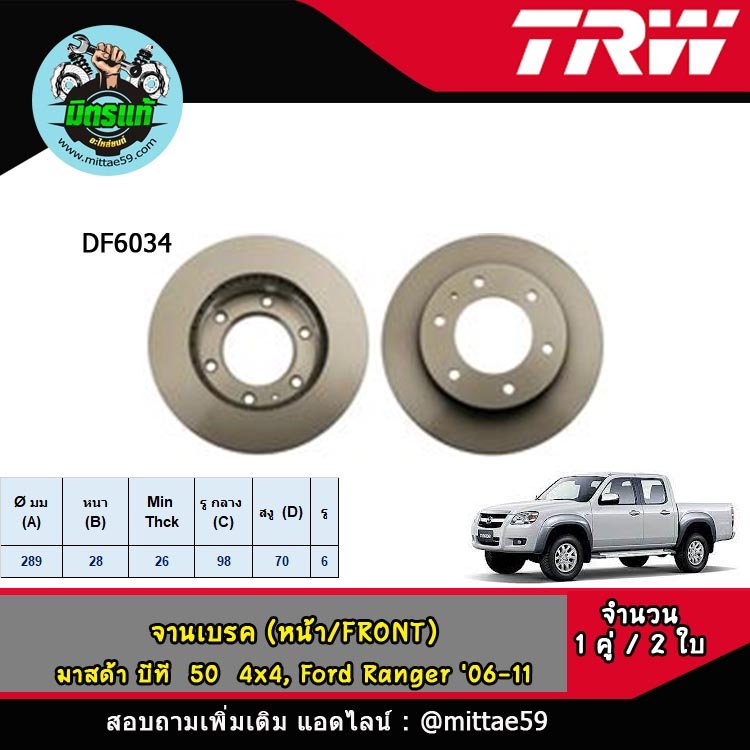 หมวดหมู่ : เบรครถยนต์ รถกระบะ ,  จานเบรค TRW ,  FORD ,  รุ่นรถยนต์ ,  MAZDA ,