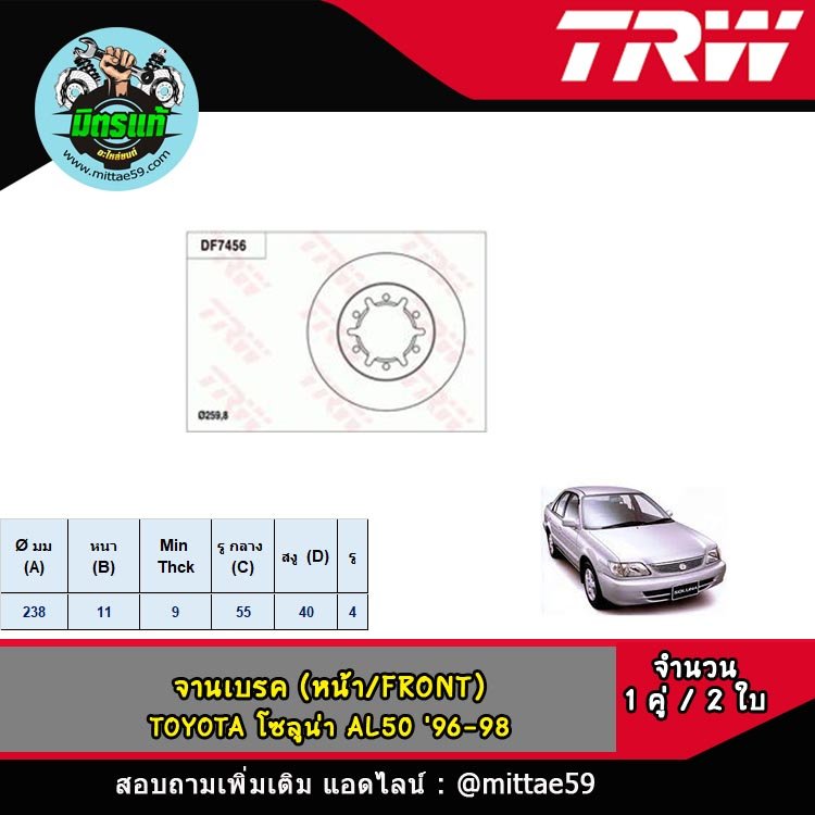 หมวดหมู่ : เบรครถยนต์ รถกระบะ ,  จานเบรค TRW ,  รุ่นรถยนต์ ,  TOYOTA ,