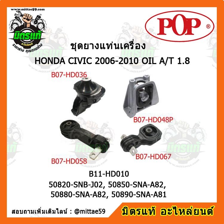 HONDA ฮอนด้า ซีวิค CIVIC FD 2006-2010 OIL A/T 1.8 ชุดยางแท่นเครื่องครบคัน POP